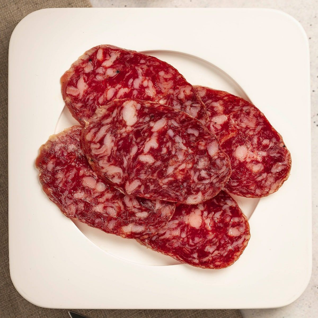 Le Saucisson de Bellota Ibérique FISAN se caractérise par une saveur agréable en bouche légèrement poivrée tout en dégageant un arôme merveilleux. Il est élaboré avec de la viande de porc de bellota jamais congelée respectant ainsi le savoir-faire ancestral. Il est vieilli dans des séchoirs naturels durant au moins cinq mois. 100% Naturel.
